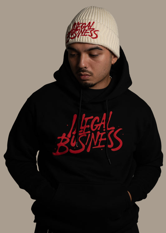 Illegal Business Logo SET Hoodie & Stacked Sweats - Navy/Red