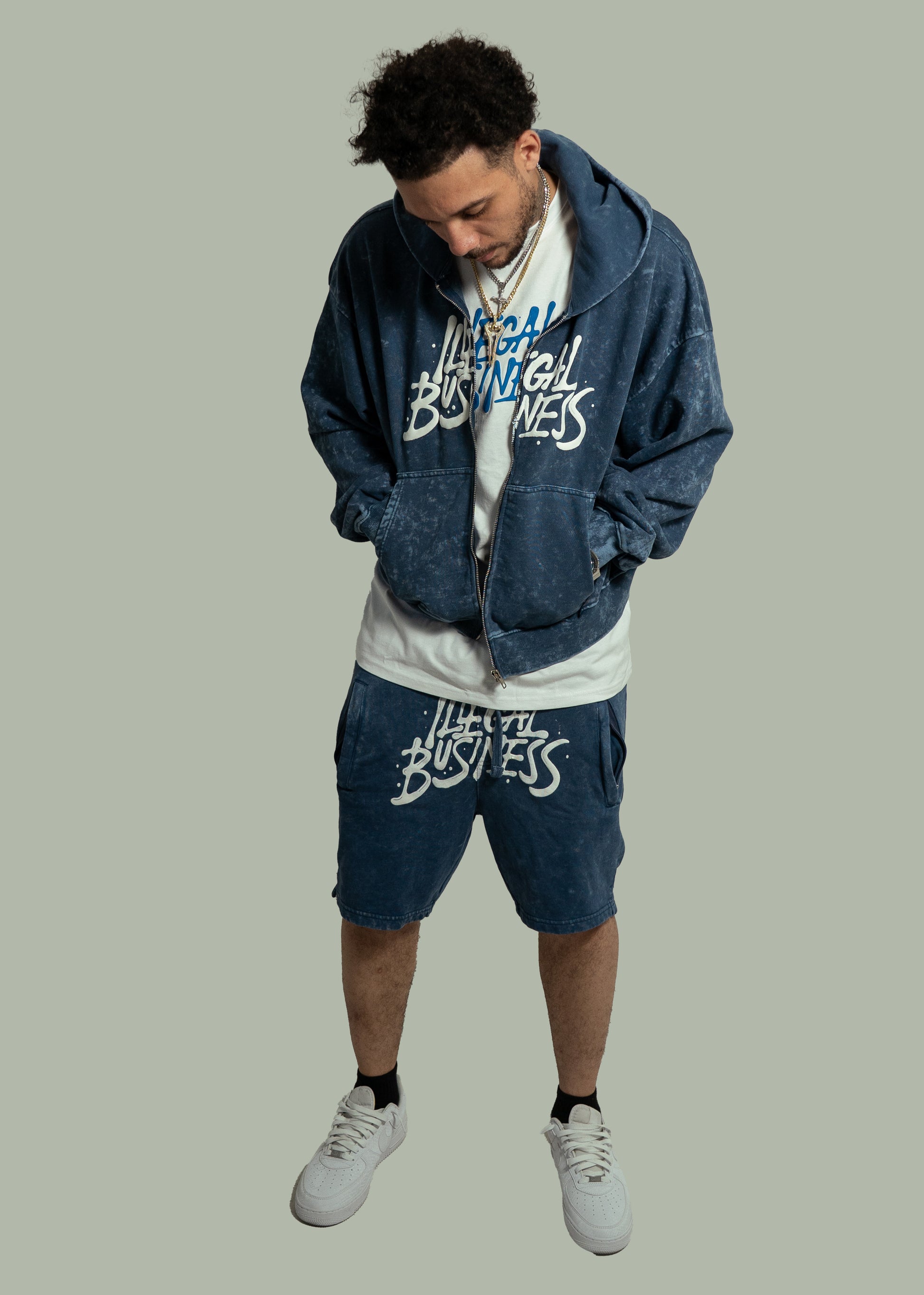 Illegal Business Logo SET Acid Hoodie & Acid Shorts - Blue/White